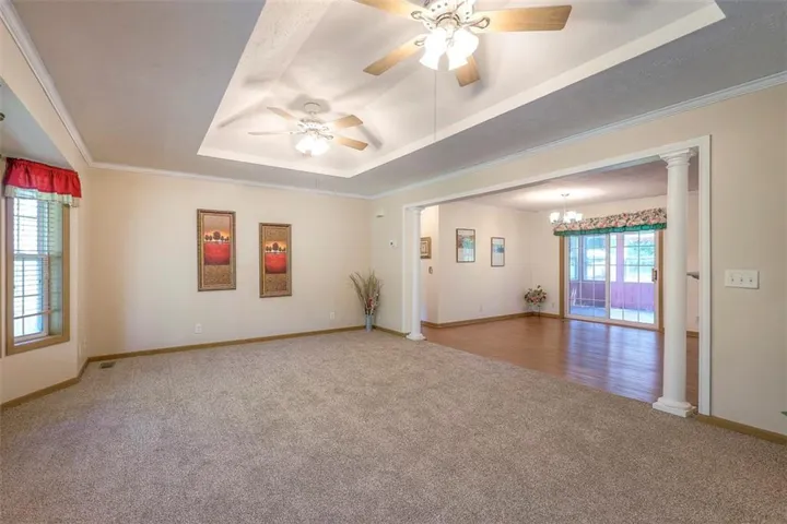 +"PublicRemarks": "SELLER MOTIVATED - BRING US AN OFFER! We have listened to your feedback on loving the property & the major updates but want more cosmetic updates so we adjusted the price accordingly to allow for those updates. In addition will allow $10K concession for closing costs or buy down of rate. BEAUTIFUL 2.932 acre lot for the country feel, but right in the city with convenient access to amenities and Lee's Summit schools. Treed lot with privacy. Two homes on the property for multigenerational living as well as multiple sheds & a large detached garage. Convenient drive through for RV. Main home garage was converted to 2 bedrooms and a sitting area but could easily be converted back to additional garage space. Beautiful in ground POOL & GAZEBO! Decks and patio space overlook the pool and grounds for relaxing and entertaining. Garden space as well as cherry, pear & apple trees. Main home features kitchen with cooktop, double oven, pantry & refrigerator stays, large living room with fireplace, updated master bath & fresh paint and hard surface floors. Office with built in cabinets. Lower level has a large bedroom with walk out. Family room with stone fireplace and water wall feature. 2nd kitchen in lower as well as area set up for future hot tub. 2 additional baths as well as some other rooms for hobby or office space. Second home on property features a living room with vaulted ceiling, 2 fans & new carpet. Master BR and BR2-3 are separated. Sun room & covered deck for views out to beautiful back yard. Walk in closets. Breezeway connects to the 2 car garage. Very unique property with so many options. Make your dreams come true with this property!"