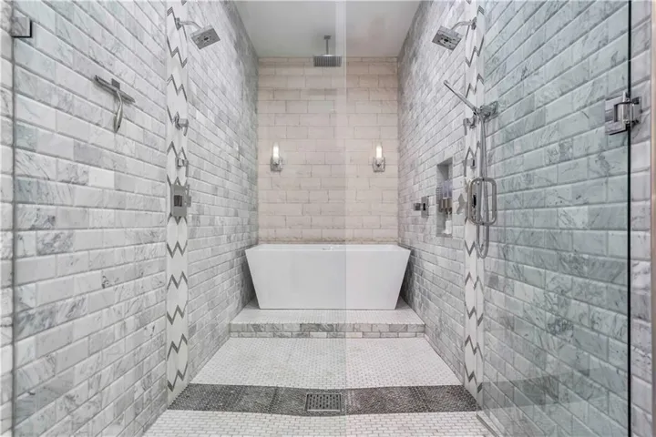 The walk-out lower level is adorned with Porcelain tile and must-see features. It includes a theatre, full bar, wine hall with a water feature, an office with floor-to-ceiling windows, and a dedicated exercise room. The lower-level spa is complete with a sauna, rain shower, and even a urinal. Additionally, this level houses a second primary suite with a spa-like bathroom, heated floors, a walk-in shower/tub, and a walk-in closet. Two additional spacious secondary bedrooms come with large walk-in closets and en-suite bathrooms.\r\n