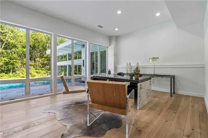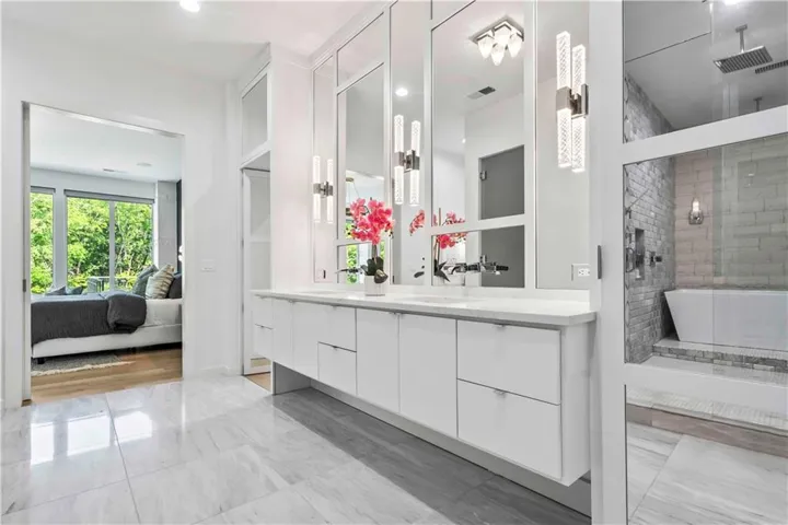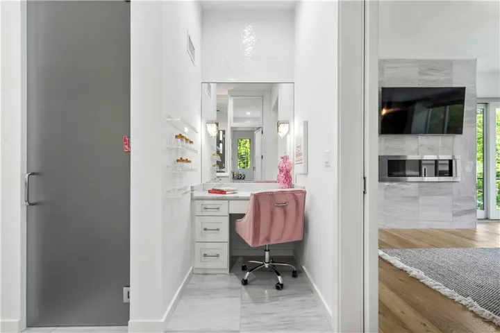 The chef’s kitchen is a culinary masterpiece, complete with high-end appliances, a spacious island, and a newly added Butler's/prep kitchen. The main floor primary suite displays sophistication with a fireplace, floor-to-ceiling windows, white oak floors, and a lavish primary bath featuring a large walk-in shower with a tub. Dual closets, including a hidden one, will captivate you with a large center island, glass doors with custom lighting, private laundry, and a coffee/wine bar. The primary closet opens to a serene outdoor sitting area.\r\n