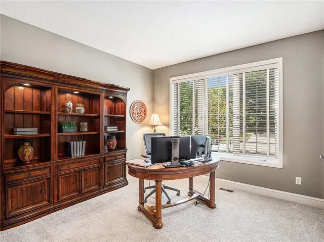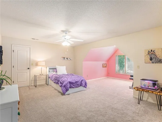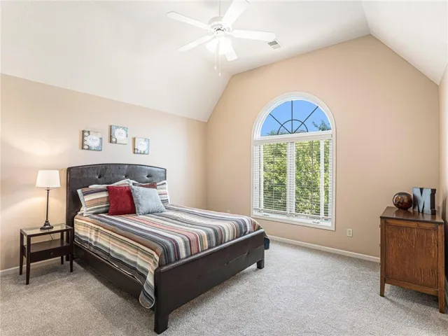 "LongDescription" => "Carpeted bedroom with multiple windows, ceiling fan, a desk, and recessed lighting"