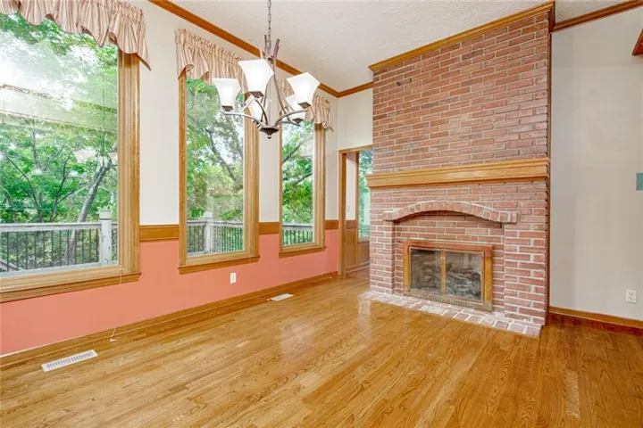 +"PublicRemarks": "You can be in this beautiful home for the holidays with so much room for entertaining. Welcome to this stunning extremely quality built home w/ 4 bedrooms, 3.5 baths with 3 garages, in the highly desirable Bent Tree subdivision with 10 minute access to downtown Lees Summit, restaurants and shopping. Perfectly situated on a beautifully fenced and professionally landscaped lot w/ sprinkler system. The beautiful 1.5 story home features an elegant floor plan bathed in natural light from the walls of windows, showcasing the beautiful view of the private, treed backyard. The see-thru fireplace adds a touch of warmth, and sophistication, connecting the stunning great room and hearth/eating areas. The chef's kitchen is a delight with an island, granite counter tops, abundant cabinet space, plus a pantry insuring lots of storage. The large bedrooms offer space and comfort, with 3 spacious bedrooms up, each with their own bath for ultimate convenience and privacy. Retreat to the serene 1st floor primary suite, featuring a stand-alone shower, whirlpool tub and double vanity plus large walk-in closet. Entertain guest in the fabulous backyard oasis, complete with a covered patio and deck, backing up to lush green space secured by an iron fence, ensuring privacy in a picturesque setting. Enjoy the convenience of a drive around 3rd car garage with enough additional space for a workshop. Don't miss the perfect blend of luxury and tranquility."