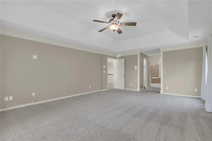 +"PublicRemarks": "Overlooking the #1 hole of Falcon Ridge Golf Course, this grand two-story home is for the pickiest buyer. The main level is adorned with abundant light from the large picture windows and soaring ceilings. With an open floor plan, the flow of the home is perfection. The grand great room features a fireplace, 18 foot ceilings, beautiful views and refinished hardwood floors. From the great room, French doors lead you to a private office that features the same gorgeous view and built-ins. The eat-in kitchen is as versatile as it is beautiful. It has a robust island with counter seating, integrated dining space and stainless appliances. Also located on the main level is formal living and formal dining. The primary suite is a private oasis with a balcony that overlooks the golf course, two walk-in closets, double vanities, large soaker tub and walk-in shower. The finished lower level features brand new flooring and a generous amount of space for a rec room. Also featured is a dedicated gym. The side entry three car garage is perfect for your toys. The exterior was painted in 2023 as well as new carpet installed. Relax on your back deck and gazebo surrounded by lush, mature landscaping. Amenities include neighborhood pools, sand volleyball, tennis courts, pickleball, clubhouse and putting green. Welcome to golf course living at its finest."