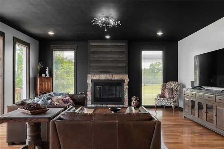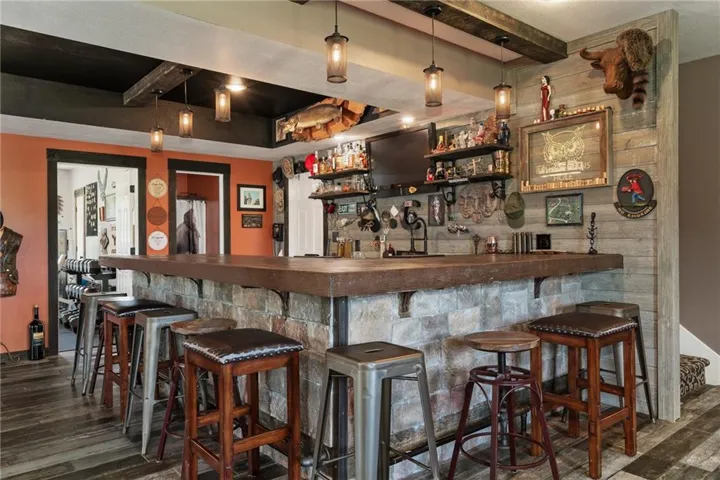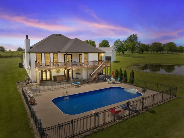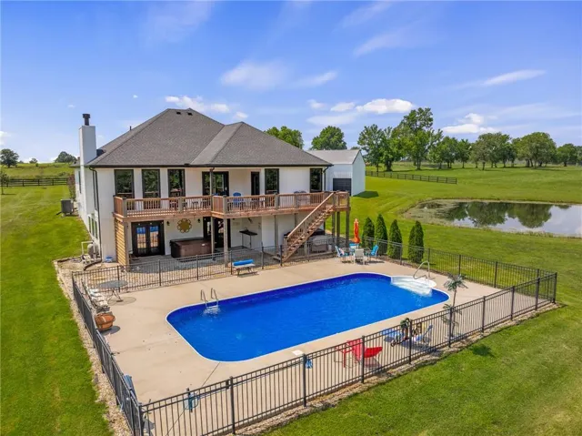 +"PublicRemarks": "Discover your dream retreat on this picturesque 10-acre property, featuring a stunning 4-bedroom, 3-bath home. The main level showcases elegant hardwood floors, while two bedrooms offer plush new carpeting for added comfort. The finished basement is an entertainer's delight, boasting a full concrete bar complete with a sink, refrigerator, and cabinets. Enjoy the summer with an inviting inground pool with a new liner, and unwind on the expansive deck running the length of the house with a coincrete patio beneath. The property includes a fully stocked pond teeming with catfish, bass, sunfish, and crappie. A spacious 40 x 40 barn, with a 16 x 35 addition, features a wood stove, electricity, shelving, and two giant doors accommodating an RV, plus a regular door with an opener. The fourth bedroom is currently used as a gym, adding versatility to the home. Surrounded by 1,100 feet of 4-rail fencing, this property offers privacy and serenity. With everything in the home less than 5 years old and roofs on both the house and barn being 6 years old, this exquisite estate blends modern amenities with country living, offering you the best of both worlds."