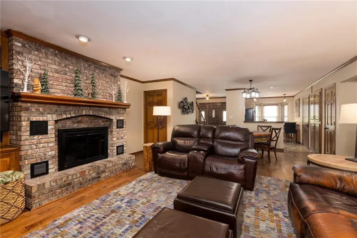 Enjoy maintenance free living in this beautiful end unit townhome. Large primary suite on the main level, hardwood flooring and main level laundry as well. Finished basement with TV and gaming areas, 2nd fireplace and a huge storage area! 2nd floor has 2 large bedrooms with walk-in closets and attic access from the closets in both bedrooms. Absolutely gorgeous outdoor living space with a covered patio and unique wine bottle decor. All windows were replaced in 2017, new roof in 2021. No investors please, HOA restrictions prohibit rental units.