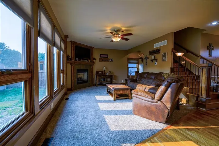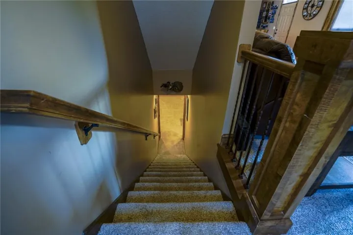 "LongDescription" => "Carpeted living room featuring stairs and a textured ceiling"