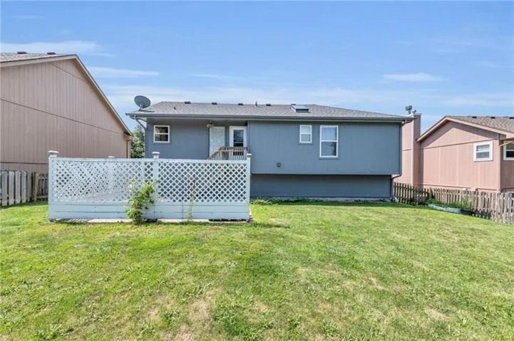 +"PublicRemarks": "This fantastic home is moving ready with stainless steel appliances and newer flooring. This fenced in home is has easy highway access in a great neighborhood in the North Kansas City school district. The living room has beautiful vaulted ceiling and fireplace, the kitchen has a pantry and lots of cabinetry for storage. Laundry is on the main level and the lower level space is large and can be a forth nonconforming bedroom, office, gym,, kids room, man cave, in-home business with a half bath and closet Space. New flooring, walls and paint in dining room, living room, basement, and garage due to recent restoration."