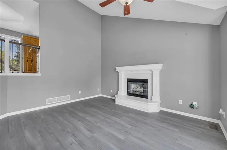 "LongDescription" => "Unfurnished living room with dark wood-type flooring, a raised ceiling, and a tiled fireplace"