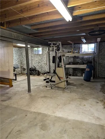 +"PublicRemarks": "Come see this ranch/rambler style home, with vinyl siding and vinyl windows. The garage has two wooden windows. There are 3 bedrooms, and 1 bath that opens both into the hall and into the main bedroom. The bath has a tub with a shower, large one sink vanity. The family room off the kitchen has one step down. This used to be the garage. Another garage was added to the back of the house connected by a hall off the family room. This family room/man cave has a large brick wood burning fireplace and a dart board. It has a slider that faces the front of the house and another window. You get to the basement and garage through this family room. The side outside door is just beyond the fireplace between the garage and top of the stairs to the basement. The eat in kitchen has a one of a kind appliance that includes a dishwasher, stove top, oven and vent combination. The kitchen also has a refrigerator. The 1 car garage faces the backyard. It has a doggie door and a door to the backyard. There are several tables and a table saw ready for the handyman. The backyard has a chain link fence and a gate to close off the driveway and another gate on the other side of the house. There is a smaller yard to mow since the garage opening is in the back of the house and much of the yard is the driveway. The unfinished basement has four windows, the laundry area and exercise area furnished with lots of exercise equipment. The lot has trees and the supports for a shed or greenhouse in the back. The house has a coat closet and a hall linen closet. There are hardwood floors in the living room, down the hall and into all bedrooms. There is carpet in the kitchen and in the bathroom. There are four ceiling fans. There is central air, a garbage disposal and a doorbell. The house faces south and is shaded with a tree. T"
