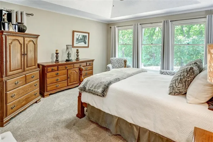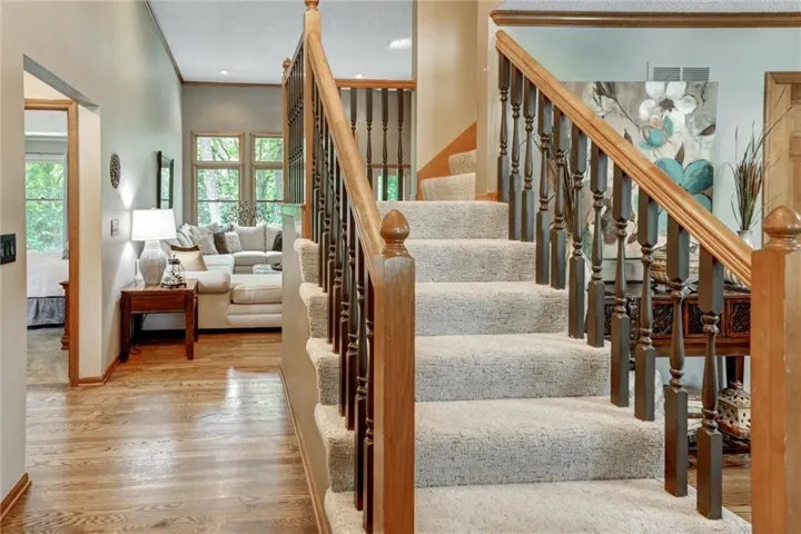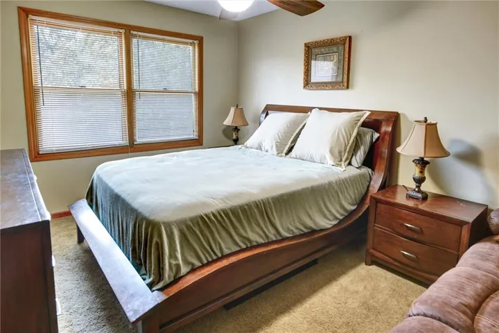 Outside, the home's location against the backdrop of Blue Springs Lake ensures tranquility and privacy year-round. Whether you're enjoying morning coffee on the deck or entertaining guests in the spacious backyard, equipped with a sprinkler system the natural beauty of the woods enhances every moment spent in this exceptional residence.\r\n