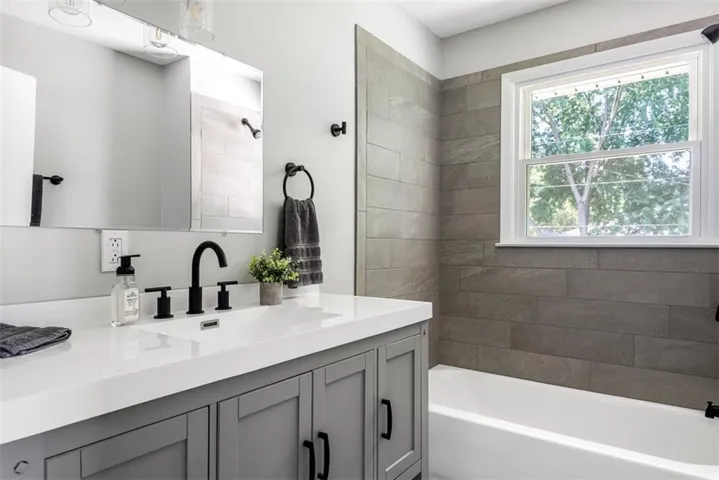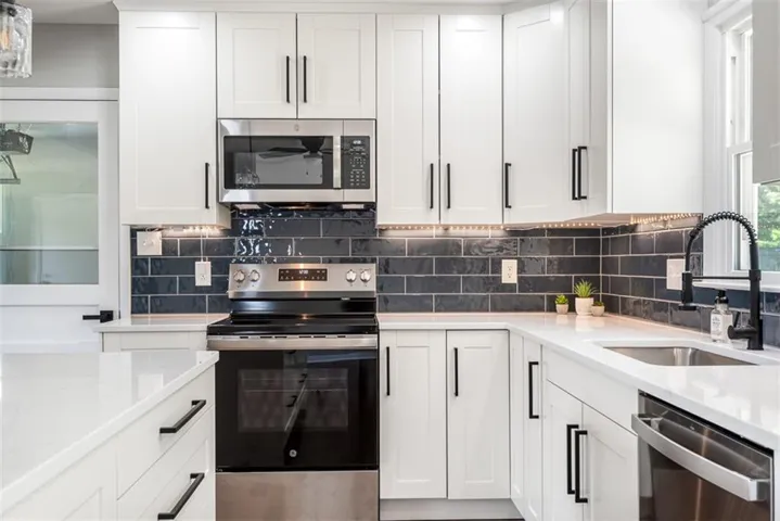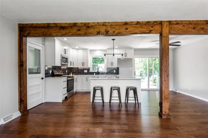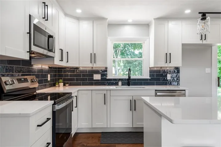 +"PublicRemarks": "Stunningly Remodeled Ranch, where classic charm meets modern luxury in the heart of Leavenworth. This beautifully remodeled home offers a perfect blend of contemporary updates and timeless elegance, making it an ideal choice for discerning buyers seeking comfort, style, and convenience. Exterior has fresh paint, and updated landscaping that enhances its overall appeal. The property features a brand-new roof and energy-efficient windows, ensuring long-term durability and cost savings. The spacious backyard with a large patio perfect for entertaining, a well-maintained lawn, and fencing. Bright, open-concept living space that seamlessly connects the living room, dining area, and kitchen. Engineered hardwood floors throughout, recessed lighting, and large windows create a warm and inviting atmosphere. The fully upgraded kitchen is a chef's dream, featuring new cabinetry, stainless steel appliances, quartz countertops, a stylish tile backsplash, and a large center island. Each bathroom in the home has been completely remodeled with modern fixtures, elegant tile work, and sleek vanities. Master suite has its own bathroom. The home offers multiple spacious bedrooms, each with ample closet space and tasteful finishes. The partially finished basement provides additional living space, perfect for a family room, home office, or gym. There is also plenty of storage space and a laundry area with a washer and dryer. Situated in a friendly neighborhood, conveniently located near schools, walking distance to a park with a splash pad, shopping, and dining options. The property offers easy access to major highways, making commuting a breeze. This home is move-in ready and waiting for you to make it your own. Don’t miss out on the opportunity. So much space!"