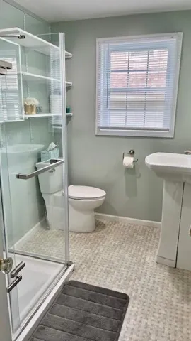 "LongDescription" => "Full bath with plenty of natural light, vanity, a shower stall, a textured ceiling, and tile walls"