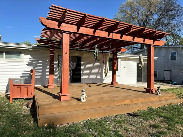 "LongDescription" => "Back of house featuring a wooden deck, a lawn, and a gazebo"