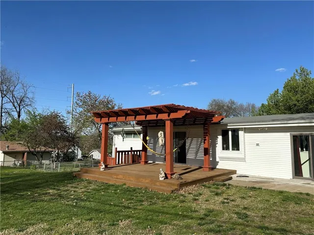 "LongDescription" => "Rear view of house featuring a deck and a lawn"