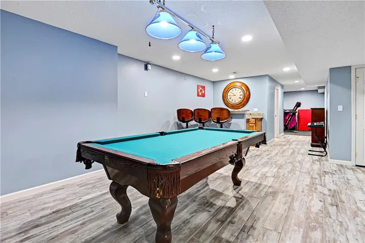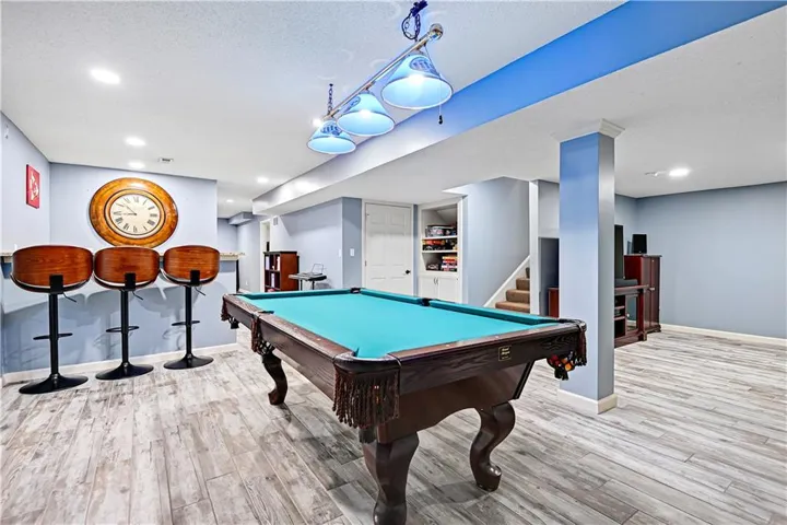 +"PublicRemarks": "Business in the front and party in the back! This well-appointed home will WOW you from the moment you enter the front door to an immaculate top to bottom remodel. Knock down ceilings, canned lighting, two floor to ceiling ledgestone fireplaces, a farmhouse sink and luxury vinyl plank flooring that begs to welcome soggy feet from the back door. This is where the party starts! The backyard features a gorgeous inground pool surrounded by an expansive polished concrete patio large enough to host all your friends and family. Even in the winter months, this home is perfect for the entertainer or large family. The family room is massive and made for entertaining or movie night with the whole family. The large eat-in kitchen boasts a walk-in pantry and ample space for a large table or comfy coffee nook. More seating is always available right off the kitchen in the elegant dining room. The fun continues in the basement with a built-in bar, pool table, exercise room, rec room, fifth bedroom & full bathroom. Upstairs, you will find four generously sized bedrooms freshly carpeted w/ attached baths featuring ceramic tile and granite countertops. This rare property in Arbor Creek the Estates is an idyllic location, only one block away from an award-winning elementary and two blocks from dining, shops, banking, healthcare and more in Arbor Creek Village. Don't miss this chance to own your private escape in this highly walkable and family-friendly neighborhood! Sellers are offering to pay pool opening and closing for the first year. Rare opportunity for VA Buyers to assume owners mortgage at 3.125%!!"