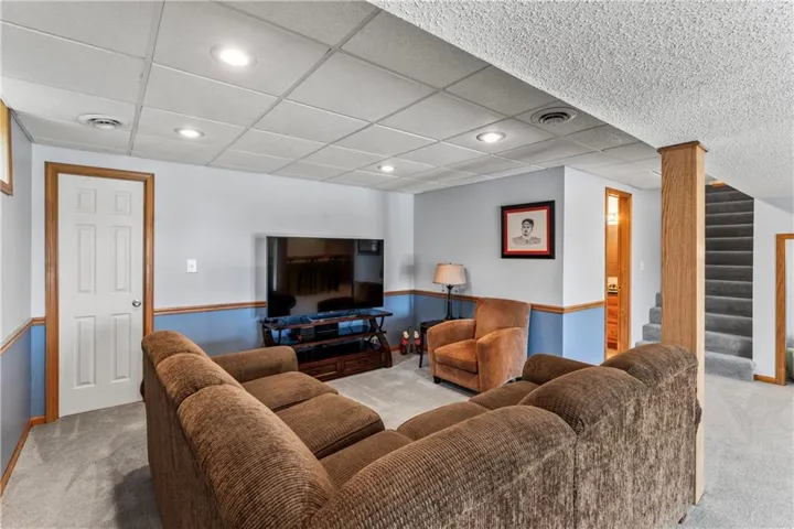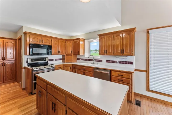 Discover over 3000 square feet of comfortable living space in this stunning 1 1/2 story home, perfectly situated on the edge of town. With a picturesque country view and modern amenities, this property offers the best of both worlds. 4 BR - 3 1/2 BA...Main Floor Laundry and Main Floor Primary BR with an huge walk-in-closet and a spacious Master Bath. Energy efficient NEW thermal - vinyl windows with a transferrable warranty and added insulation...Home office or Formal Dining Room-you decide...Lets talk about this roomy kitchen with lots of cabinets, an island and a roomy breakfast area with a view... the breakfast area happens to open up to the Living Room and the two rooms share a cozy gas fireplace...Space is no problem in this home - you can use the Large Family Room with a Bar in the Walk-Out Basement.\r\n