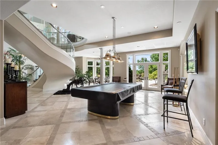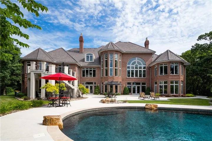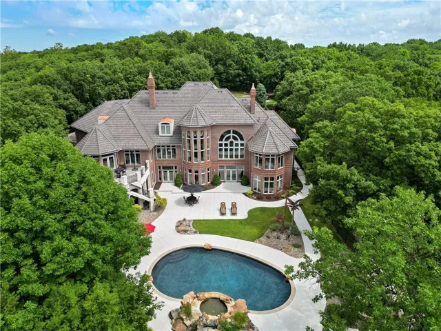 For hosting, there’s a full bar and a second kitchen, making entertaining guests an effortless yet elevated experience. Step outside to your own resort-like oasis, featuring a beautiful lagoon-style pool, an outdoor kitchen, and an expansive deck area to entertain or relax and enjoy the lake views. Just off the pool area is an indoor spa room with an attached bathroom and steam shower. The property includes a five-car garage ideal for car enthusiasts, plus a dedicated shop area. Don't miss this rare opportunity to own this masterpiece of craftsmanship located just minutes from MCI Airport, Charles B. Wheeler Airport, downtown KC, and the Plaza. Privacy, luxury, and location at their finest! Taxes and square footage are estimated and should be verified by Buyer's agent.