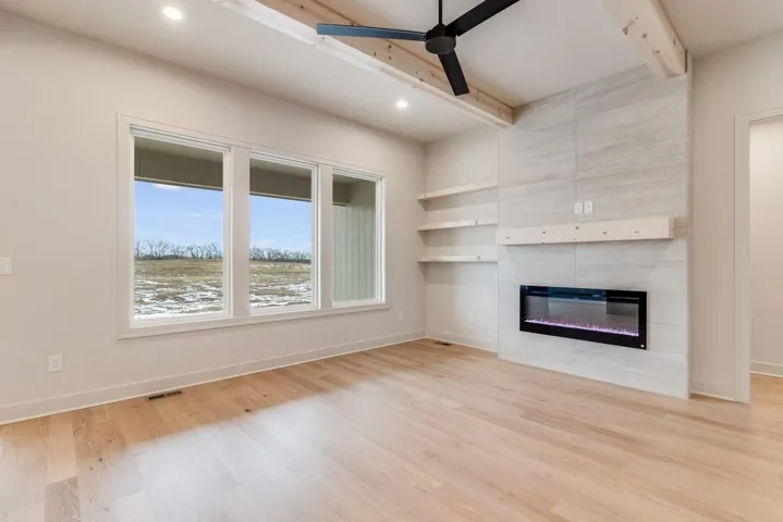 +"PublicRemarks": "This is the Osceola II by Titan Custom Homes. This stunning new home perfectly blends modern comfort with a warm country feel. The great room boasts soaring ceilings, tall windows, and a cozy fireplace, creating a welcoming ambiance. The kitchen features a large island, quartz counters, and a walk-in pantry. The master suite includes a spacious bedroom, double vanities, a walk-in tiled shower, and a large walk-in closet that connects to the laundry room for ultimate convenience. The finished basement offers a rec room, 2 additional bedrooms, a full bath, and ample storage space. The neighborhood has a picturesque fishing pond and a scenic walking trail offering residents a serene environment for relaxation and recreation. Raymore is conveniently located just south of Kansas City, providing easy access to the metropolitan area while maintaining a small-town feel. There are a variety of shopping and dining options, from local boutiques and restaurants to larger retail centers and popular chain eateries. Welcome home!"