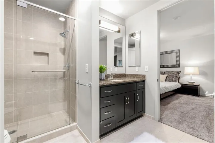 Inside, you’ll find 1,625 sq. ft. of open, airy living. Floor-to-ceiling windows fill the space with natural light, while hardwood floors and quality finishes add a refined touch. The kitchen is equipped with stainless steel appliances, granite counters, custom cabinetry, and a large island that connects to the dining area, accommodating hosting when the occasion calls.\r\n