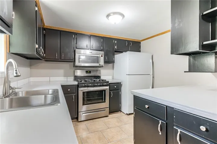 "LongDescription" => "Kitchen featuring stainless steel appliances, brown cabinets, light countertops, and a textured ceiling"