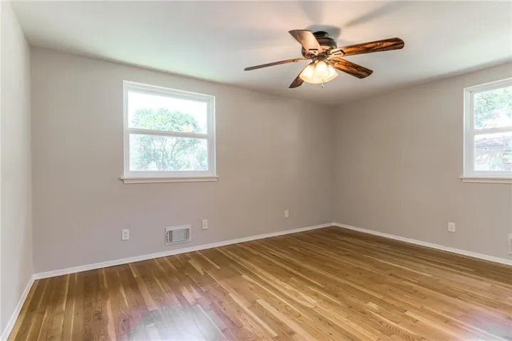 "LongDescription" => "Bedroom with multiple windows, light wood-style flooring, a textured ceiling, and ceiling fan"