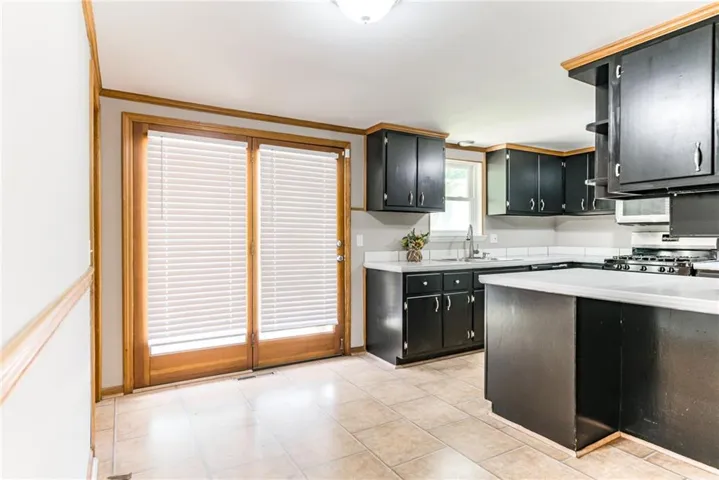 "LongDescription" => "Kitchen featuring decorative backsplash, light countertops, black dishwasher, and brown cabinets"
