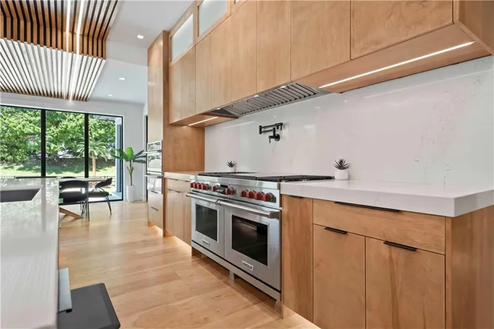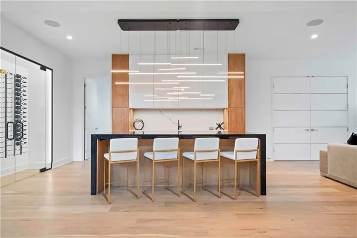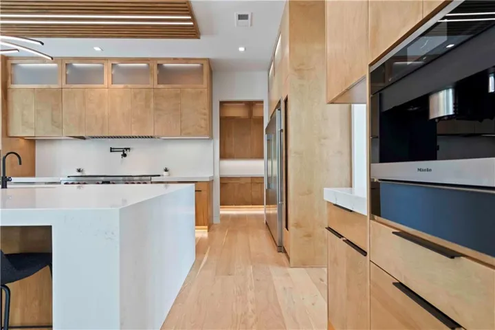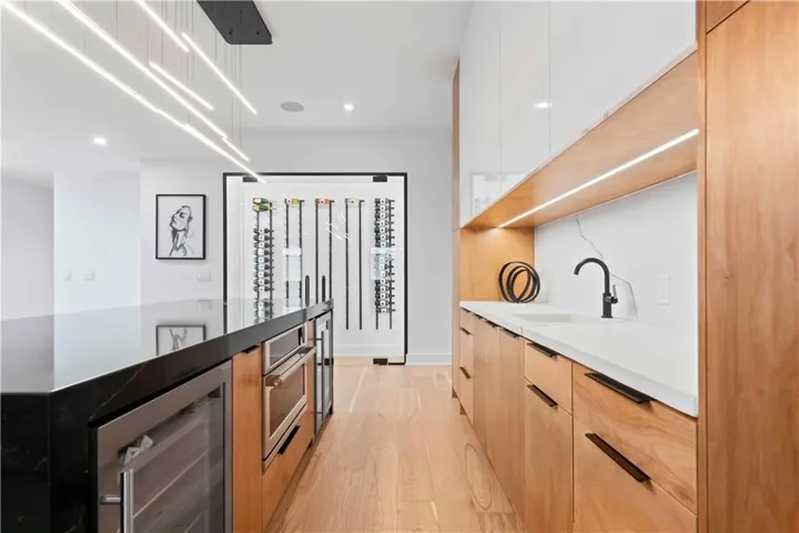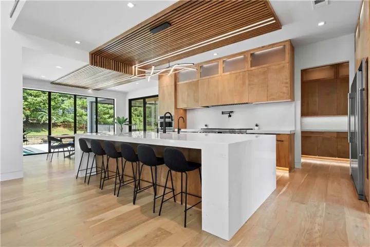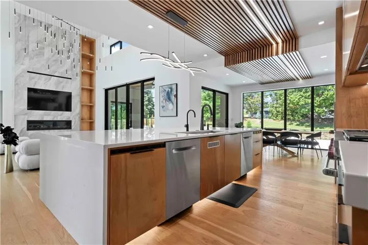 +"PublicRemarks": "NEW PRICE! Custom-Built Masterpiece! Blue Valley School District – A Cul-De-Sac Oasis! Discover unparalleled luxury w/this Evan-Talan-designed architectural gem, showcasing an open, light-filled floor plan, soaring ceilings, & expansive windows that bathe the interiors in natural light. Enter a culinary haven in the kitchen featuring a 12x12 island w/a quartz waterfall countertop, Wolf & Sub-Zero appliances, 4 ovens, a built-in Miele coffee maker, & Sub-Zero Designer Wine Storage. Includes a butler’s pantry, dual dishwashers, sonic ice maker, & a trash compactor. The main level offers a lavish primary suite w/dual vanities, a dual shower, & a custom walk-in closet. A secondary main-level bedroom with an en-suite bath & outdoor access is ideal for poolside relaxation. Upstairs, a loft w/built-ins & a deck complements two additional en-suite bedrooms & a second laundry room. The finished basement is a retreat w/a family room featuring a quartz waterfall wet bar, a custom movie theater w/a 150" Polar Star Elite Screen & 4K Sony Laser Projector, a home office, & a fully equipped exercise room & saunas! The backyard offers a saltwater pool w/porcelain tile, 12-person spa w/iridescent glass mosaic tile, & sunken fire pit. Enjoy the maintenance-free artificial grass lawn, inground trampoline, & a covered lanai w/a custom 8-person island, built-in heaters, motorized shades, & a full outdoor kitchen. The 8-car garage features custom epoxy flooring, floating cabinets, a Surelock Boss 76 Extra Large Gun Safe, Tesla car chargers, & powder-coated glass doors. The home boasts a stucco exterior w/a Stoneworth Raven Tile Roof & a custom driveway w/travertine tile. Advanced home automation includes programmable lighting, motorized shades, & a whole-home audio system, all seamlessly blending indoor & outdoor spaces. Nestled in coveted south Johnson County, minutes to Heritage Park, shopping, dining, & major highways. Experience the epitome of luxury living—make this one your home!"