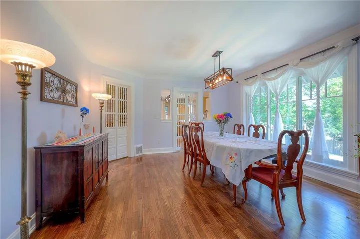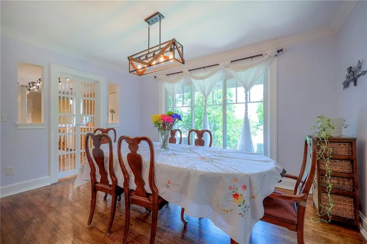 "LongDescription" => "Dining area with a fireplace and recessed lighting"