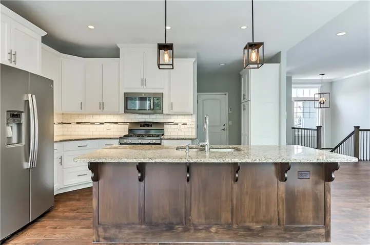 Lower level with 9 foot ceilings throughout not only has 2 more bedrooms and another full bathroom, but a large storage closet that includes a safe room and a whole house water filtration system. A large family room completes this open space of a walkout creating a seamless indoor-outdoor living experience. \r\n