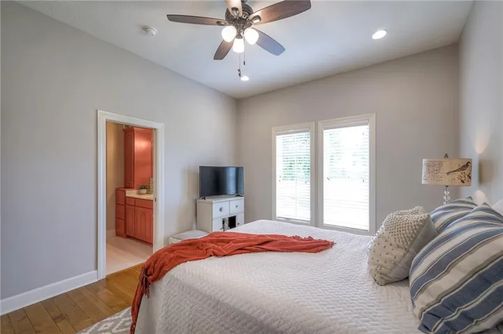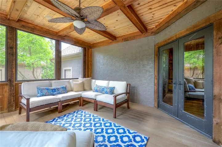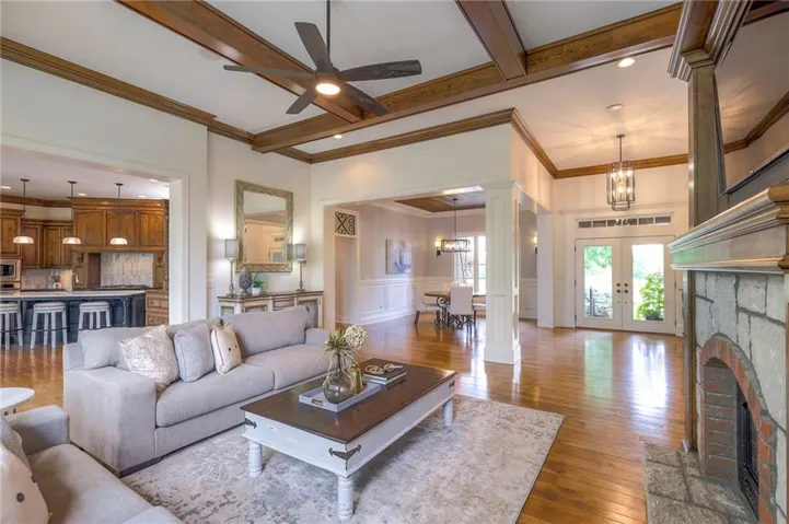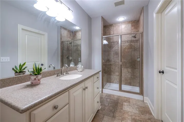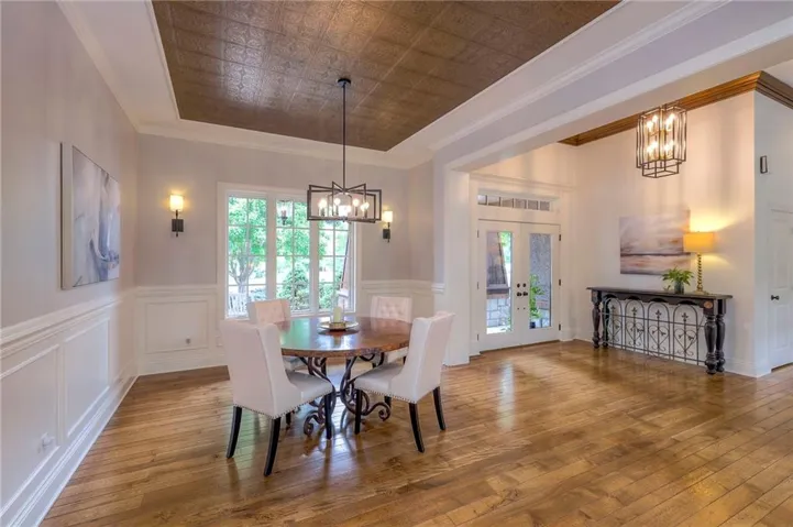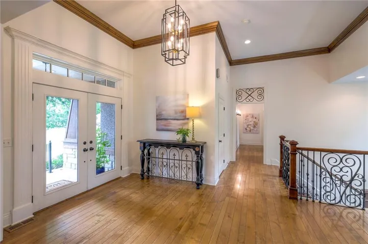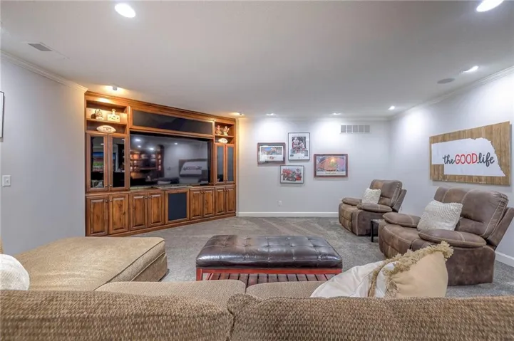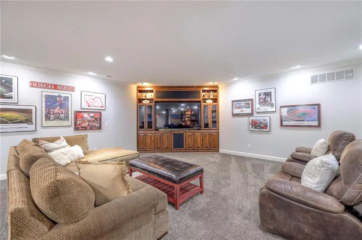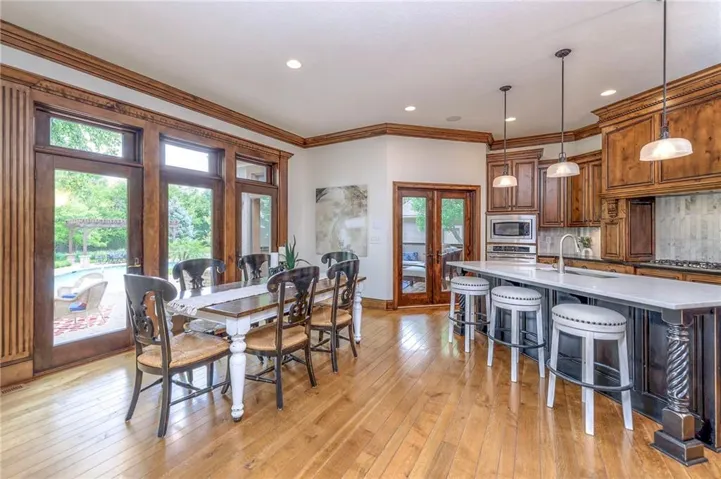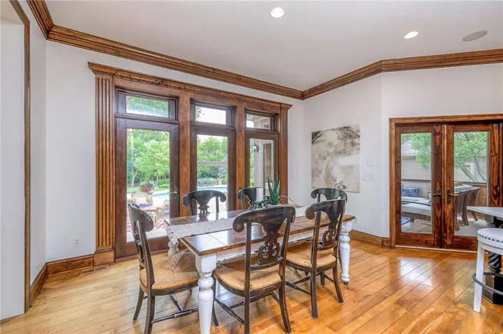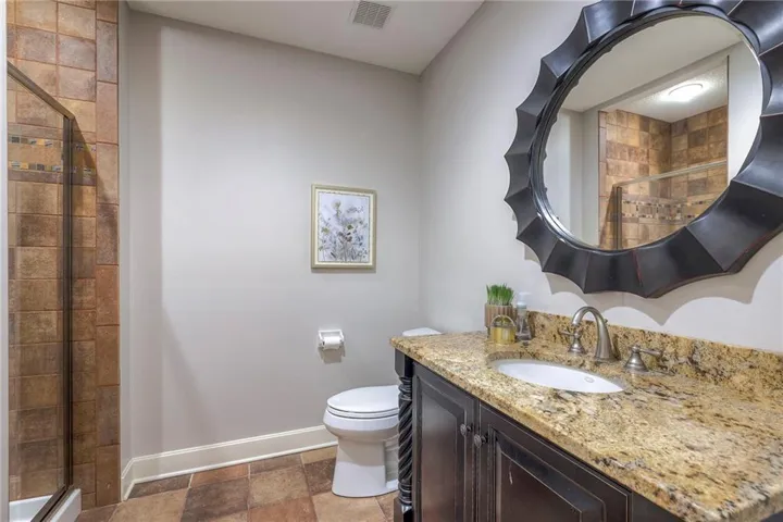 +"PublicRemarks": "Welcome to luxury living at its finest! This stunning 4-bedroom, 4.5-bathroom home boasts a unique reverse floorplan, situated on a private estate lot with a picturesque backdrop. As you step inside, you'll be greeted by an open floorplan featuring soaring ceilings & an abundance of natural light that fills the sundrenched rooms. The gourmet kitchen is a chef's dream, complete with a spacious island, pantry, custom cabinets, gas range, & stainless steel appliances. The great room is the heart of the home, offering a cozy gas fireplace & a wall of windows that overlook the breathtaking backyard. The screened porch, perfect for entertaining or simply enjoying the serene surroundings. The primary suite is a true retreat, featuring a spa-like bath with two walk-in closets, a whirlpool tub, & built-ins. An additional bedroom on the first floor with an ensuite, a spacious laundry room with built-ins, & a first-floor office provide convenience & comfort. The lower level is an entertainer's paradise, featuring a family room with a full custom bar, two additional bedrooms with ensuites, a workout room or flex space, ample storage, & a storm shelter. Not to be missed is the back stairway from the lower level to the 3-car garage, as well as the additional detached 2-car garage. Walkout/walkup to the picturesque backyard, complete with a paver patio leading to the custom inground pool w/diving board, surrounded by lush landscaping & multiple sitting areas including a pergola for shade & a gas firepit for evening gatherings. You will find the additional detached 2 car garage making a total of 5 car garage space or use the detached garage as a shop/hobby space. This exceptional property also offers access to a neighborhood pond stocked with fish & scenic trails. Don't miss the opportunity to make this stunning residence your own & experience the epitome of luxury living."