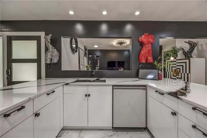 +"PublicRemarks": "This recently remodeled and expanded Mid Mod Ranch with four-bedrooms and 2.5-bathrooms exudes contemporary, modern sophistication while embracing the iconic charm of mid-century design. QUALITY CRAFTSMANSHIP AND UTMOST ATTENTION TO DETAIL ARE EVIDENT! Step inside to discover a stunning open-concept layout with gleaming black and white quartz countertops, crisp white cabinetry, and sleek white luxury vinyl tile flooring throughout. The state-of-the-art kitchen is equipped with new high-end appliances and designed for both casual dining and elegant entertaining. The adjacent dining and living areas offer ample space for gatherings with friends and family. ONE of TWO fireplaces is a Preway original to house! Outside, the private retreat backyard (surrounded by aluminum fencing on 3 sides and hand-forged steel in front) features a sparkling saltwater pool w/ push-of-a-button cover for refreshing swims, comfortable lounge chairs, and a shaded, covered cabana area. ANOTHER outdoor patio off dining room/laundry/or garage enhances the space, perfect for dining with serene views of the gardens, and breathtaking sunset cotton candy skies at dusk. This separate space is perfect for guests or extended family, offering both privacy and convenience. Surrounding the home are expansive and lush gardens and greenery, with over 40 different plant and tree varieties..50K+! Wall of windows all across the back with sliders out to the cabana and pool area! Plantation shutters in every room- TPO worry-free roof, newer HVAC....YOU NAME IT, ITS BEEN REPLACED! MUST SEE TO BELIEVE! This amazing property is ideally located close to highway 69, i35 or 435!"