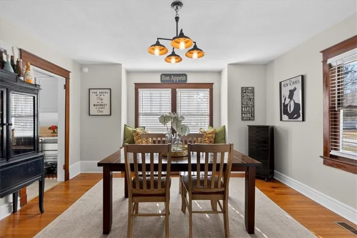 Storybook bungalow in the heart of downtown Lee’s Summit! OPEN SAT 12-2:00- This beautifully remodeled 1.5-story home blends timeless charm with thoughtful updates, offering 3 bedrooms and 1 full bath. Step inside to hardwood floors, a main-level bedroom, and a stunning dining room featuring French doors, classic built-ins, and a charming window seat. The refreshed kitchen shines with a brand-new sink, new cabinet doors, fresh paint, newer appliances, while a functional mudroom adds everyday convenience. Upstairs, discover a flexible loft space and two additional bedrooms (one currently styled as a dressing room), all accented by newer Andersen windows that flood the space with natural light.\r\n