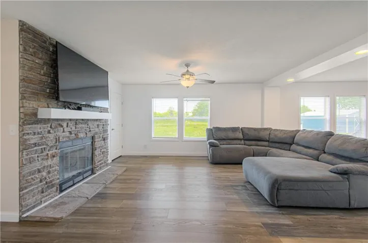+"PublicRemarks": "Beautiful home less than 6 years old*FRESH interior paint*airy, bright & light open floor plan*kitchen with granite countertops, island, ss appliances, hardwood floors*opens to deck & sprawling backyard w/ a privacy fence*3 bedrooms, 3 full bathrooms*daylight basement w/ full bathroom*primary bedroom with vaulted ceilings*primary bathroom w/ double vanity & walk-in closet*recently painted garage*Fort Osage schools*close to shopping & dining"