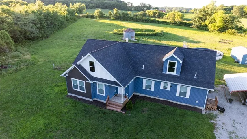 +"PublicRemarks": "WOW...This Beautiful 5 year old Ranch on 5 acres is breathtaking! Rural living at its best! Enjoy the seclusion with an amazing view of the countryside, wildlife and gorgeous sunsets! Be drawn in immediately as you walk into the wide Open floor plan with tons of natural lighting, creating a nice flow throughout the main level. Home features 4 bedrooms, 3 with walk in closets, 3 full bathrooms and over 2100 finished square feet of one-level living. As a BONUS, there is a huge expandable attic with full staircase access. This space could almost double your square footage if finished offering a dormer and an extra space for a 5th Bedroom. The outside features the most adorable vintage silo, an above ground pool, Newer storage shed and a huge barn perfect for storing farm equipment, housing farm animals and more. This property has it all; Simple living out of the hustle and bustle of the city. Just farm ground, pastures and fields for miles. Seller is willing to entertain any and all requests that a buyer makes in an offer."