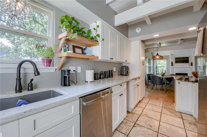 "LongDescription" => "Kitchen featuring a peninsula, light stone counters, decorative light fixtures, arched walkways, and recessed lighting"