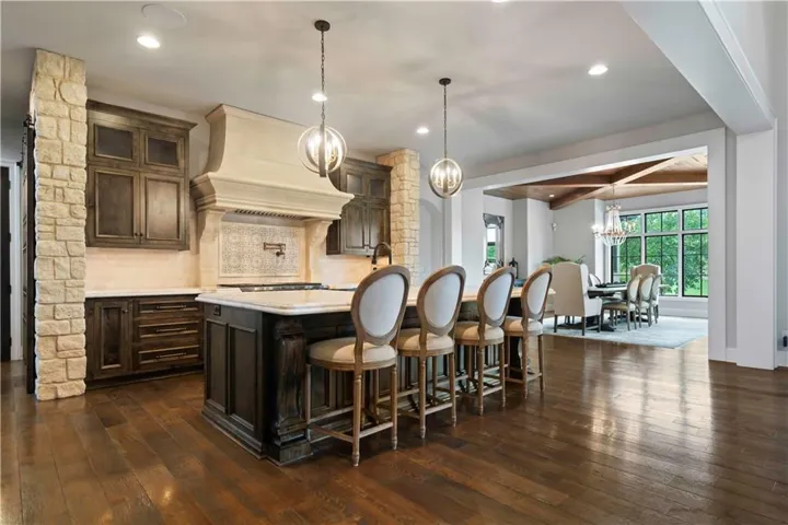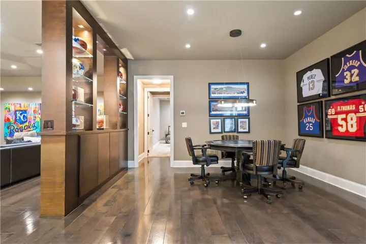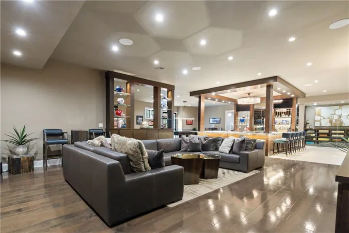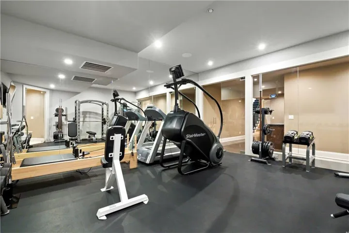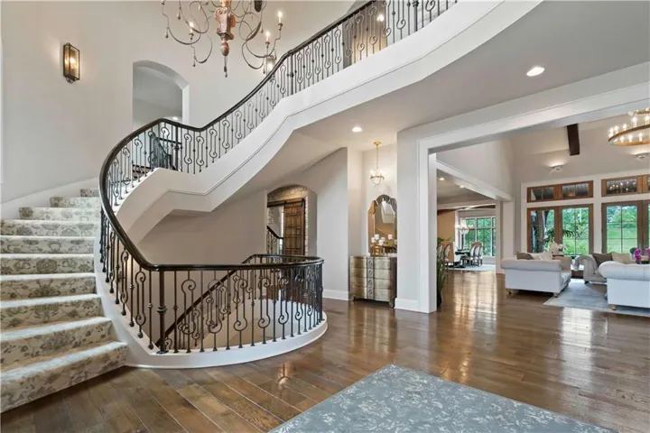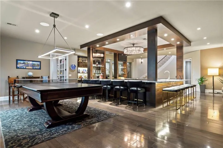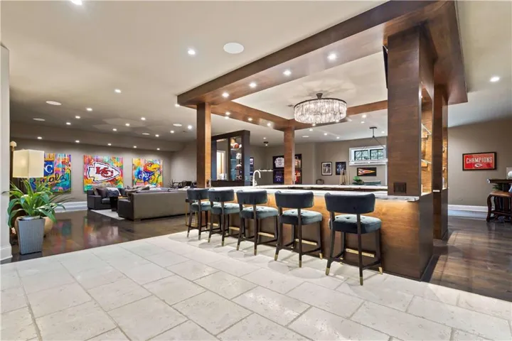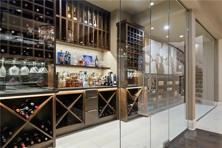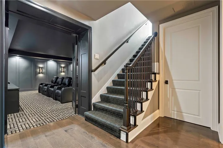 The finished lower level is an entertainer’s dream, featuring a U-shaped bar with seating for 15, a glass-encased wine room, and expansive rec and living areas. An impressive home gym and a dedicated home theater complete this extraordinary space.\r\n