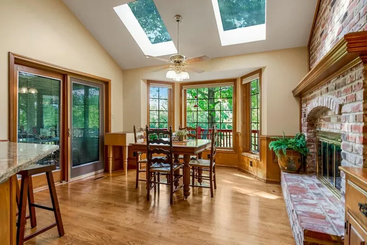 +"PublicRemarks": "UPDATE-Open Houses for Sept 14&15 are cancelled-status changed to "showing for backup"-call with any questions. Spectacular Setting in "South Overland Park / Stilwell" area! * PRIVATE & Wooded * with 1.83 acres, backing to Blue River! This 1.5 Story home features the PRIMARY SUITE on the MAIN LEVEL, also with an office/library/music room on the 1st floor, and a formal dining too. HUGE living room with fireplace & soaring ceilings, and views of the wooded backyard. Kitchen features endless countertop workspace, plus a VAULTED hearth/breakfast room, a brick fireplace and a bay window ... an amazing place for all your informal dining and gatherings. Just off the kitchen, there is a spacious screened-in-porch to enjoy the OUTDOORS and impressive backyard. From the screened porch, you also easily connect with the deck overlooking the lawn, trees, and Blue River Valley. Upstairs, you'll find two guest suites, each with their own baths, plus expandable attic space. In the finished walkout basement, you'll enjoy TONS of additional space to entertain or unwind - family room area for TV/Media, fireplace, and plenty of space for game tables & more fun. There is also a 4th Bedroom plus a full bath. The walkout basement transitions out to a lower patio with a porch swing, and additional seating. DO NOT MISS the wonders of the beautiful grounds and lawn. The back right corner is an ideal gathering place with a firepit/conversation area, and beautifully-manicured gardens, walking path and picnic table. An additional terraced patio area with landscape walls provides the perfect getaway place to relax, recharge, and take in the beauty of all that surrounds you! This entire home is amazingly-well-cared-for...IMMACULATE INSIDE & OUT! It has also been PRE-INSPECTED for additional PEACE OF MIND (see report in the binder at the home and also in MLS supplements). This type of property doesn't come along often, so set up your plan to tour in person!"