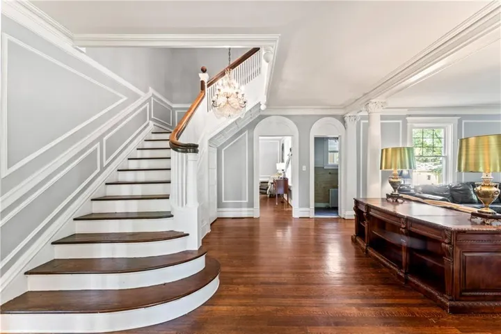 +"PublicRemarks": "SELLERS ARE READY TO SELL. Sellers LOVE this home and will be sad to see it go!! A Historical Estate settled on just under 9 acres of land, this secluded property is almost entirely surrounded by a variety of trees. The entrance can easily be missed if one isn’t looking out for it--two stone pillars mark the entrance, and a gate opens up to a private drive up to the main house like a magical storybook. The grounds have 2 koi ponds as well as ample space for gardens with a variety already planted. Remnants of Jane Overesch’s garden is seen on the southwest side of the property, marked with the stone and concrete walls. The main house has a rarity not normally seen with this age of structure: the house sits on poured concrete at about 14 inches thick, when normally homes in this era were built on stone. The basement has a great height and is perfect for ample storage. The home has been brought into the 21st century with a gourmet kitchen you can feast your eyes on! Enjoy having 2 refrigerators, 2 ovens, 2 dishwashers and sinks, a giant quartzite island, and a 6 burner gas range with a beautiful hood--what an amazing opportunity for cooking for small and large crowds. Much of the flooring has been re-stained as well as original woodwork. The paint colors throughout are kept in the same line of colors offered by Sherman Williams in the early 1900s. The home now features 2 HVAC systems and has been rewired with updated panels--whereas before there was no air conditioning, only a boiler, and original wiring. Enjoy large bedrooms on the upper level, a bonus office space, with laundry available now on the 2nd floor as well, located in the walk in closet space of the primary suite. The lower level features 2 living spaces, a formal dining space, laundry room, and a three-seasons room. Many windows capture sunlight at all times of the day. This estate is truly remarkable and unique, here and ready for its next owner. Historical Booklet available upon request."