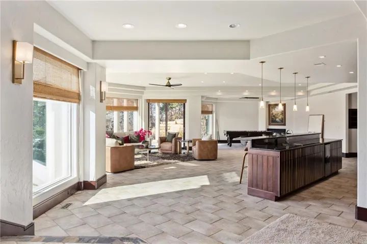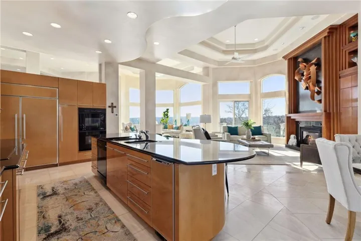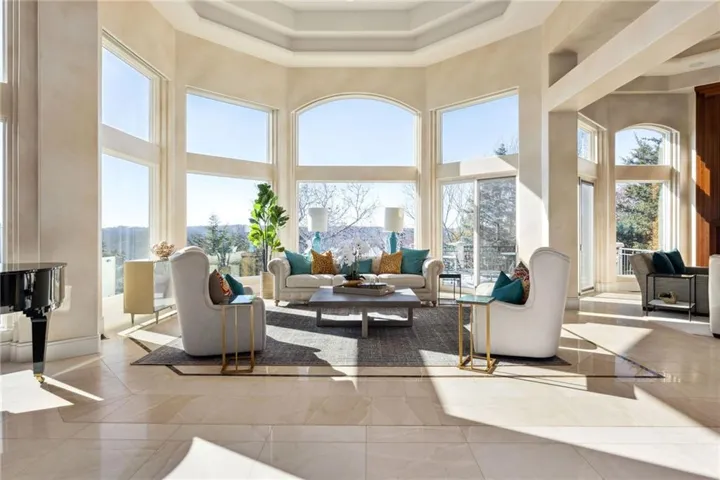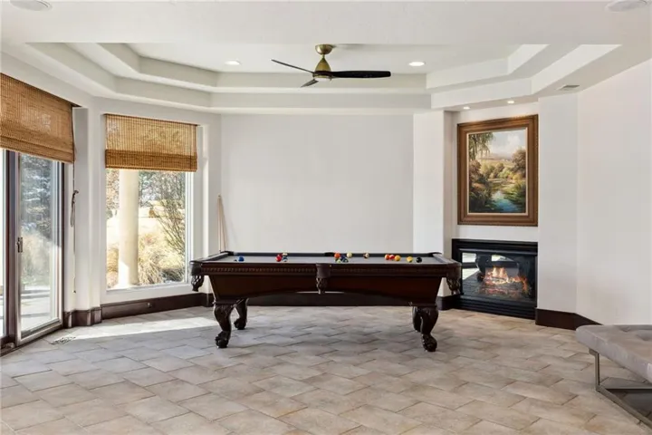+"PublicRemarks": "This stunning modern Mediterranean was built with views in mind. Walls of glass span the back of the house to capture endless views an scenic panorama that changes with each season. Situated at the back of a short cul-de-sac, a private drive opens to this sprawling home. Magnificent coffered ceilings throughout and travertine floors on the main and lower levels. There are multiple outdoor areas to enjoy either an intimate dinner or the gorgeous Kansas sunrise with your morning coffee. The spaces in this home are generous but still intimate. The kitchen features a butler's pantry and adjacent dining area/solarium with built in grill. The huge walkout lower level has multiple sitting areas, a generous bar, and two bedrooms which offer privacy for guests or kids. Indulge in relaxation and wellness with a dedicated gym, as well as a wet and dry sauna for a spa-like experience. The property also includes access to the community lake, clubhouse, exercise room, party room, pickleball court, play area, sauna, swimming pool, tennis courts and trails, providing ample opportunities for recreation and leisure. ADJACENT .38 ACRE LOT will be sold separately."