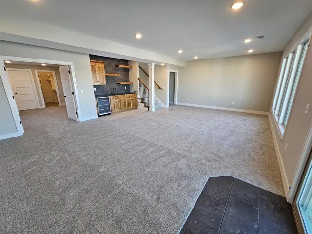 +"PublicRemarks": "Beautiful Catalina Rev. 1.5 sty. plan w/walkout LL & views of greenspace! Exceptional quality & value you expect from Crestwood Custom Homes: Solid Birch cabinetry, extensive trim & ceiling details, Pella windows, all masonry stucco exterior walls, wood flooring & stunning quartz tops! Open concept plan with Kitchen, Great rm. & Dining rm. open to each other, tall ceilings, FP w/adjoining built-ins, kitchen island & walk-in pantry! Primary suite features a show-stopping, zero-entry, walk-in shower & bonus pull down clothes racks in spacious walk-in closet! Main floor also includes a versatile 2nd bdrm suite or Den & a covered deck! Finished walkout LL features 2 bdrms., 1 bath, ample entertaining space & a full wet bar. 1st flr. utility rm adjoins primary closet & hall, battery back-up to sump pump, passive Radon pipe & sprinkler system."