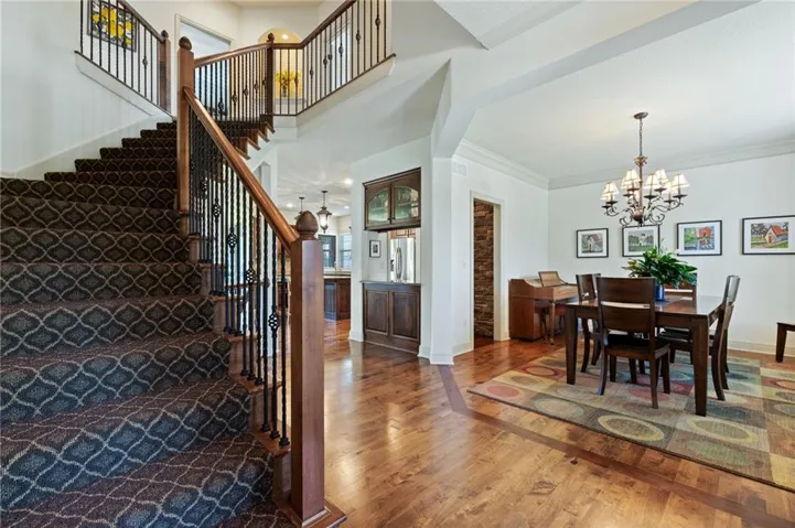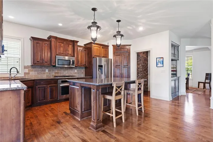 +"PublicRemarks": "Located on a quiet cul de sac in sought after Mills Farm and walking distance to award winning elementary school, this immaculate residence has 6 spacious bedrooms and 5 luxurious bathrooms, offering ample space for comfortable living and entertaining. This open-concept floor plan seamlessly connects the main living areas, creating a perfect flow for both everyday living & hosting guests. The gourmet kitchen is a chef's delight, featuring stainless steel appliances including gas stove & new dishwasher, huge walk-in pantry, a large center island, and plenty of counter and cabinet space. Bonus: open butler pantry that is custom built with the most beautiful stone that is a must see! Breakfast room and formal dining perfect for hosting too! The kitchen overlooks the inviting great room, complete with a cozy fireplace & large window that floods the space with natural light. There is a bedroom on the main level w/ attached full bathroom. The master suite located on the second level is a true retreat, offering a peaceful oasis w/ a spa-like ensuite bathroom and a walk-in closet + a bonus private sitting area. The additional bedrooms are generously sized and provides plenty of space for family members or guests. Laundry room has tile floors, built ins and sink! Walkout finished basement has 6th bedroom, full bathroom, large recreation room with wet bar, and tons of storage areas. Outside, you will find a screened porch, beautifully landscaped backyard, perfect for outdoor gatherings or relaxing evenings. Enjoy the expansive patio area, ideal for summer barbecues, and a lush green lawn for kids and pets to play with fenced yard. Residents of Mills Farms enjoy access to a variety of community amenities, including a clubhouse, swimming pool, walking trails, and more. New garage doors are in the process of being installed!"