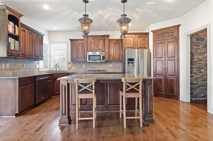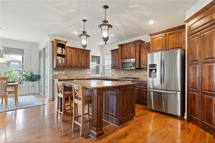 +"PublicRemarks": "MOVE-IN READY! Introducing the NEW Oakmont reverse 1.5-story by Bickimer Homes, thoughtfully designed for elevated everyday living and effortless entertaining. Situated on a picturesque wooded walk-out homesite, this 4-bedroom, 4.5-bath home with a 3-car garage showcases refined finishes and intentional design throughout. The main level offers two bedrooms and two-and-a-half baths, including a flexible front bedroom ideal for a private home office or guest suite with full bath access. At the heart of the home, a stunning kitchen with oversized island anchors the open-concept layout, flowing seamlessly into the vaulted great room featuring exposed beams, custom built-ins, and a striking floor-to-ceiling stone fireplace. A spacious dining area is surrounded by large windows capturing serene treed views. Designed with entertaining in mind, the kitchen is complemented by a walk-through prep pantry with cabinetry, counter space, and sink, connecting directly to the grilling deck—perfect for hosting and everyday convenience. Outdoor living continues with a covered deck and covered patio, creating multiple spaces to relax and gather while overlooking the wooded greenspace. The walk-out lower level expands the living space with a generous recreation room, large windows for natural light, a wet bar, two additional bedrooms with en-suite baths, and ample storage. Located on Lot 56 in Enclave at Manchester Park, this home is tucked among mature trees in a quiet yet conveniently located community."