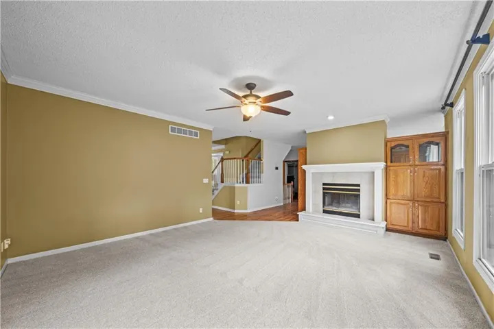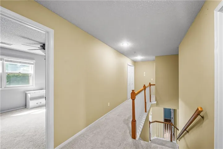 "LongDescription" => "Carpeted living room featuring stairs and a textured ceiling"