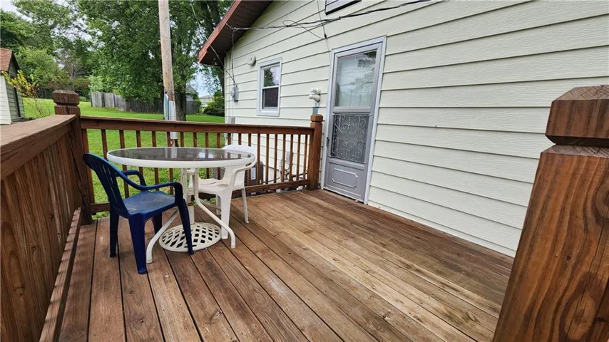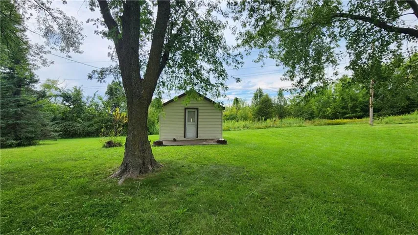 +"PublicRemarks": "Good Bones!!! This house has a 2 year old roof, 3 year old furnace and air conditioner, and updated vinyl windows. The huge 2+ car garage that has lots of room for a workshop. 2 large sheds could fill many uses. Great yard with trees and a wooded area in back. Feels like a touch of country in town on this dead end road. New back deck. Extremely well insulated with 2 types of insulation. This open floor plan has lots of windows and a flexible use of the space. The large third bedroom has been opened up to the living room to serve as a family room. But double doors could be added or the wall restored to seal it off with full privacy. It still has the original door from the hall and closet. Great opportunity to own a home and build equity with some cosmetic improvements!"