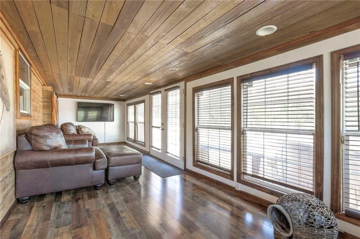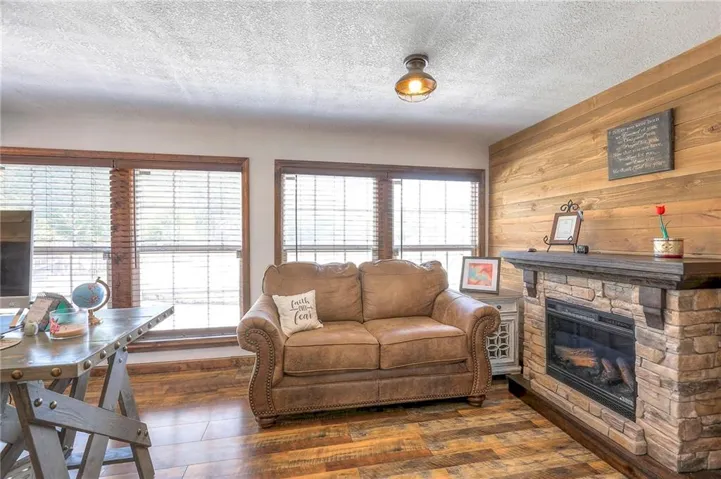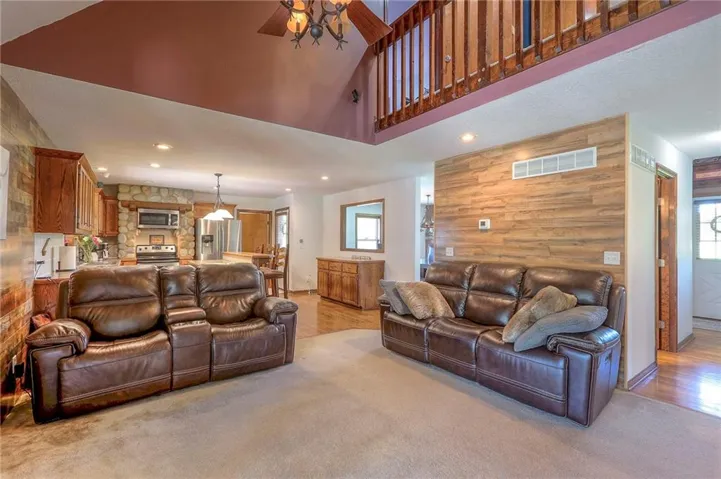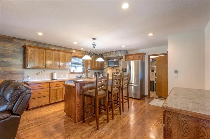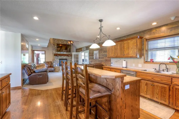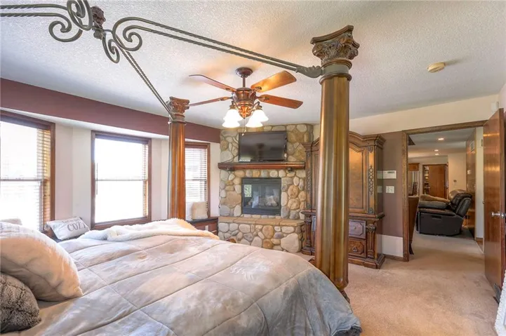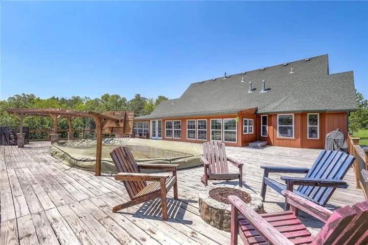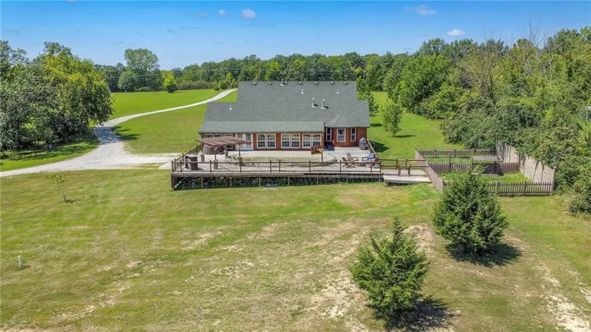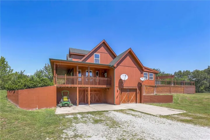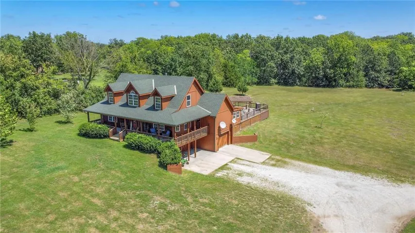 +"PublicRemarks": "Location, location, location! This home is convienently located across from Watkins Mill State Park and a short distance to 69 HWy. The views from this stunning story and a half will take your breath away! Enjoy sitting on your oversized deck and enjoy the sunsets! In the winter stay cozy in your sunroom and drink your morning coffee. The entryway to this beautiful home draws you in to stay awhile. Not one but two stone fireplaces to keep you warm or to just have a romantic night in. Prepare a meal worthy of a masterchef in your spacious kitchen while your guests gather in the dining room. The master bedroom has window seat for you to snuggle up on and enjoy a good book while you watch the wildlife from your room. Relax in the whirlpool tub before retreating to bed in the master en suite. The bright office space allows you to work from home and be close to family. Two bedrooms mirror each other on the second floor with a huge bathroom for them to share. The finished space downstairs allow you to entertain or hang out with friends and family. For the outdoors person a shared pond with a new dock to fish off of will provide hours of relaxation. Needing a man cave or a she shed? This 40x60 outbuilding will make all your dreams come true! An entrepreneur's delight with a bathroom and separate office space! Come see this today!"