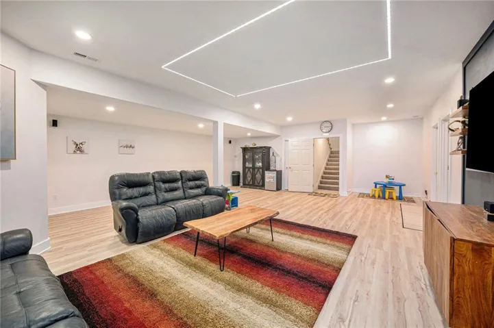 bedroom/bath ensuite. New LVP flooring in loft and bathroom. The recently finished lower level (2023) features large rec area for added family room is perfect for movie nights and 2nd master suite gives families tons of flexibility when having guests or to accommodate extended stay family needs.