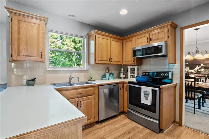 Nestled in a peaceful Merriam neighborhood cul-de-sac, this delightful 4-bedroom, 2.5-bathroom home perfectly blends comfort and charm. As you step inside, you'll be greeted by a spacious living room with large windows that bathe the space in natural light, with built-ins and fireplace, gracious ambiance. The well-organized kitchen, open to the cozy hearth room, is ideal for everyday meals and gatherings, featuring L-shaped counters and stainless steel appliances. The flow into the formal dining room adds a touch of elegance for entertaining.\r\n