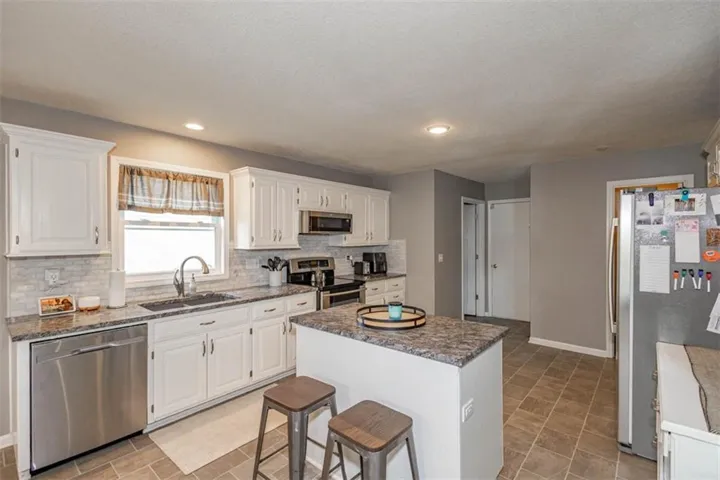 +"PublicRemarks": "Check out the amazing views out back of this outstanding 2 story fully renovated home that backs up to an amazing view of a pond and green space. Enjoy the view from a screened in deck of the pond and the fenced back yard. This home has new windows, doors, siding, roofing and gutters. The large country kitchen has tons of storage, island and newer appliances that all stay. New flooring throughout the house. Large Master Bedroom with tons of closet space. Very well maintained home and manicured lawn with a sprinkler system. This is conveniently located 1/2 mile from I-70. 10 minutes to the Legends, 20 Minutes to Fort Leavenworth and Downtown KCMO, 15 minutes to Johnson County. Location Location Location. Grocery Store, Walmart, Hardware store, Gym, restaurants and specialty stores are a 1/4 mile away. Don't wait it won't last at this price."