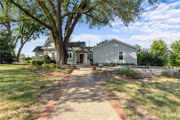 +"PublicRemarks": "A hidden gem right in the middle of blue valley schools. A rare opportunity to live on acreage in Overland Park, while still being close to everything. This unique 2.43 acre property includes a beautifully remodeled residence with brand new composite roofs on both buildings and shiny copper gutters, 2 newer HVAC units, and a new hot water heater. You will be amazed by the rich crown molding, beautiful plantation shutters & unique stained glass light fixtures throughout the ranch style home. The large bright kitchen features granite counters, stainless appliances, & a gas stove. The original 1900's farmhouse was fully remodeled & modernized while keeping much of the beautiful unique features such as gorgeous crown moldings, original fireplace, soaring beamed ceilings, pocket doors, 10 foot ceilings in master bedroom, plantation shutters, gleaming hardwoods. Rebuilt chimney with custom clinker bricks add to the charm. This sprawling Estate also features an additional fantastic brick & stone accented out-building with 710 square feet of extra living space, room for hobbies, or a perfect small business or home office location. There is a full bath, kitchenette, & non conforming bedroom in the out building. Lovely reclaimed antique bricks grace the property walkways. Mature trees buffer the home & land from adjacent neighborhoods & street. The out building has a breathtaking sitting room with gorgeous solid cherry wood floors, extensive built ins, beautiful views & custom pecan cabinets. Solid copper guttering recirculates rainwater supply to the Lily pond. There is a garage space for 3 additional cars, or a workshop. There are 3 brick floored horse stalls, for additional storage if you are not housing ponies. Need to store something large? This is the place. The property sits above the street and the property entry is from Stearns Place cul-de-sac, not from 151st Street. You must see this property in person to truly appreciate all it has to offer!"