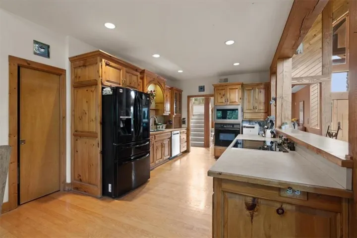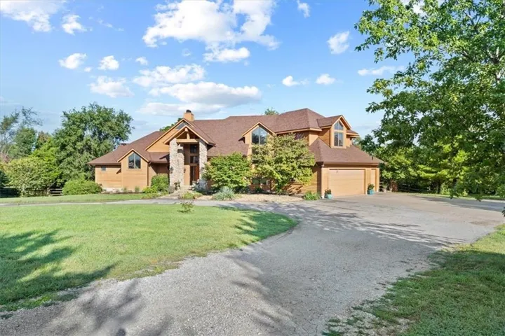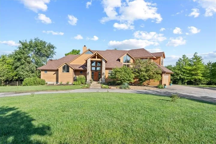 Colorado lodge style home, nestled on an expansive 20.12-acre property. This rutic and secluded retreat home is surrounded by trees and offers proximity to Lake Olathe, Prairie Center Nature Trails, Winery, Brewery, and Golf Course. A haven for hunters, boasting abundant wildlife and a generously stocked pond perfect for canoeing, bass fishing.\r\n