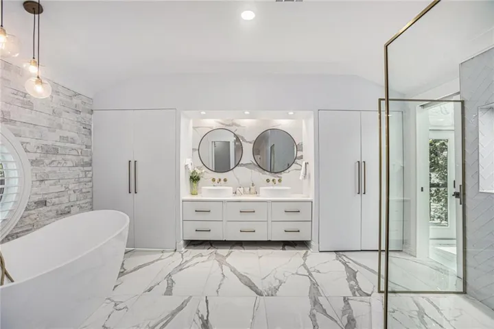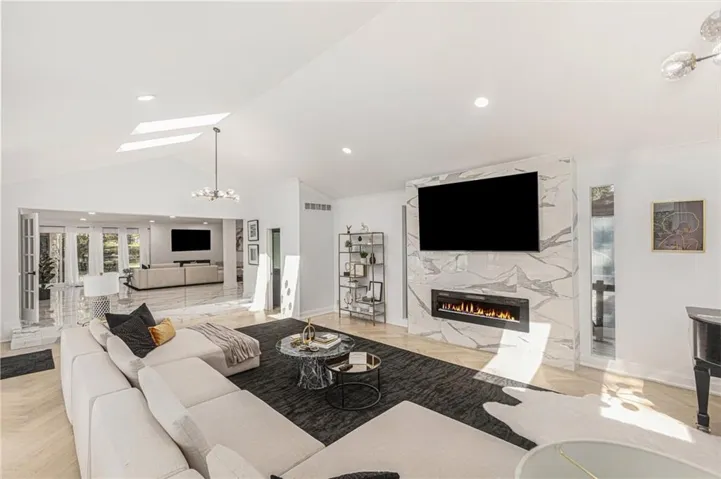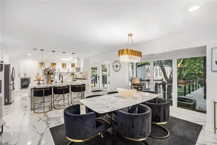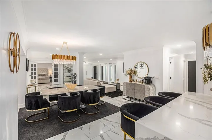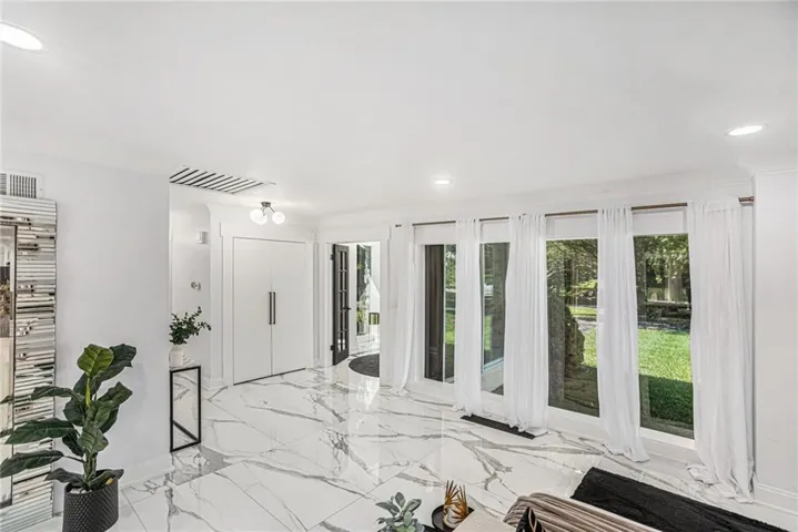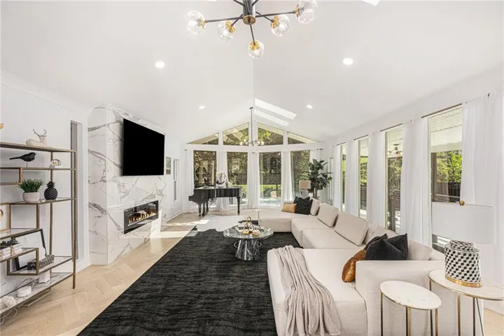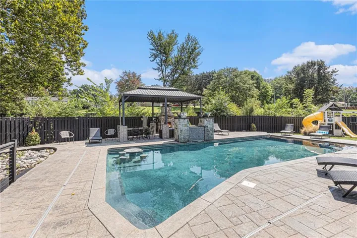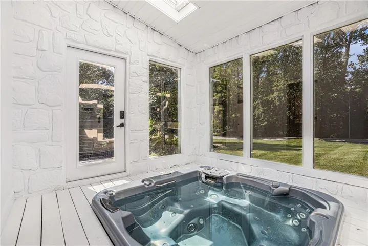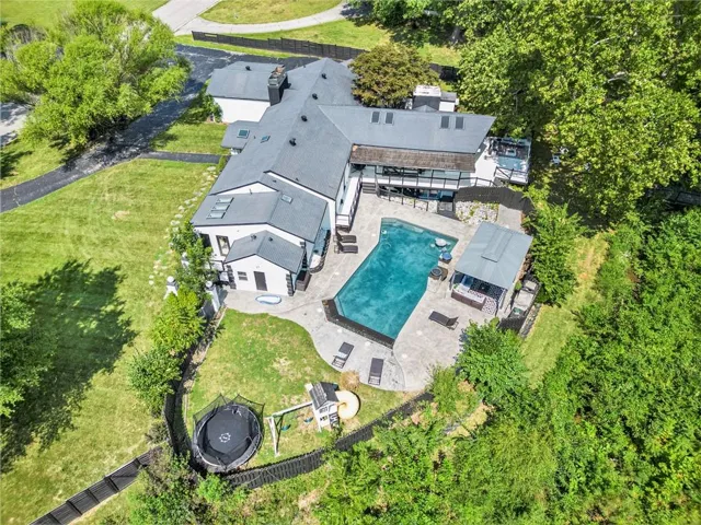 +"PublicRemarks": "This is the perfect private oasis you have been awaiting for! This sprawling ranch on over an acre lot has all the bells and whistles. Beautifully updated with a contemporary vibe and totally open floor plan. Not one inch has been left untouched. Soaring ceilings and walls of window throughout creates an abundance of natural light. Expansive family room looks out onto an amazing pool, deck, and patio. Main living area consists of living room, family room, dining area, and kitchen. Spacious chefs kitchen features quartz countertops, farm sink, tons of cabinet space, double ovens, gas range, and a fabulous island for additional seating. Spectacular primary suite with spa like bath offering double vanity, walk-in shower, and soaker tub. Right off the primary bath is your own personal hot tub area that walk outside to the pool. Two additional bedrooms, two updated baths, and office are located on the main level. BEST PART IS YET TO COME - perfectly designed private back yard, salt water pool, and covered patio with fire place and sitting area. Sneak down to the lower level which has its own family room, bedroom, and full bath. Shed out back which can be used as more living space. Attached oversized garage. This home truly has it all, there is absolutely nothing left to do but move right in!! There is still time to enjoy all of what this home has to offer."